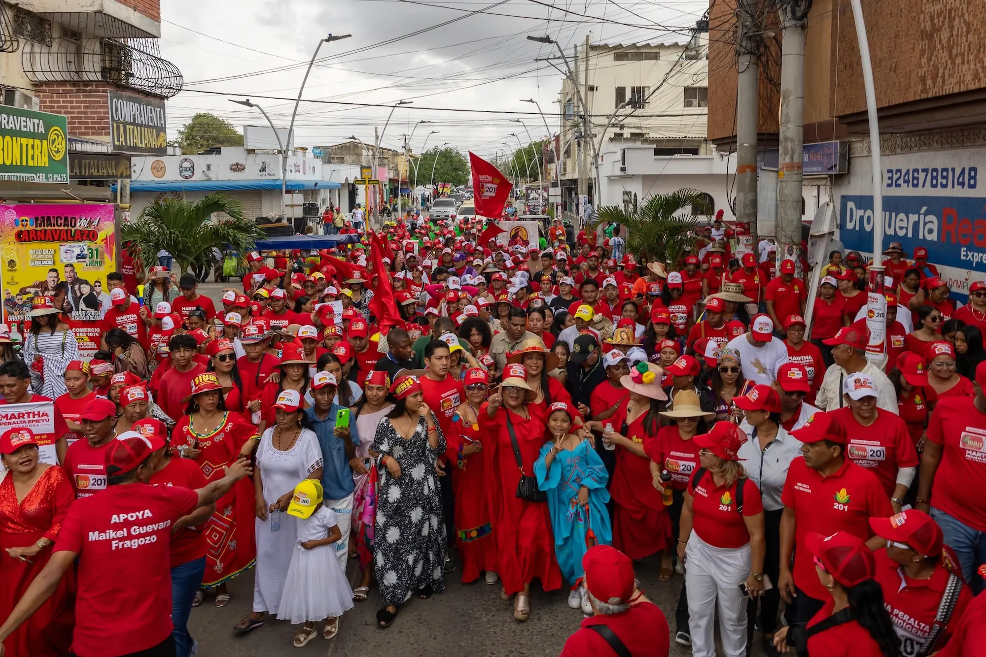 Maicao se volcó a las calles para acompañar a la senadora Martha Peralta Epiayú en una caminata que recorrió el centro del municipio y que, según sus organizadores, reunió a cientos de personas pese a la lluvia. La jornada fue presentada como una muestra de respaldo a su aspiración de repetir curul por la circunscripción especial indígena en el Senado de la República.