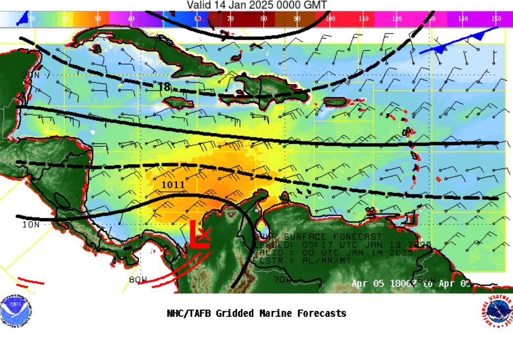 El Sistema de Alertas Tempranas de Corpoguajira informa que actualmente se mantiene la interacción entre un sistema de alta presión ubicado al oeste del océano Atlántico norte y la baja presión del Darién, posicionada al sureste de la cuenca del mar Caribe. Esta condición generará una intensificación de los vientos, con velocidades estimadas entre los 30 y 48 km/h, así como un incremento en la altura del oleaje, que oscilará entre los 1,5 y 2,5 metros, especialmente en el litoral y en alta mar.